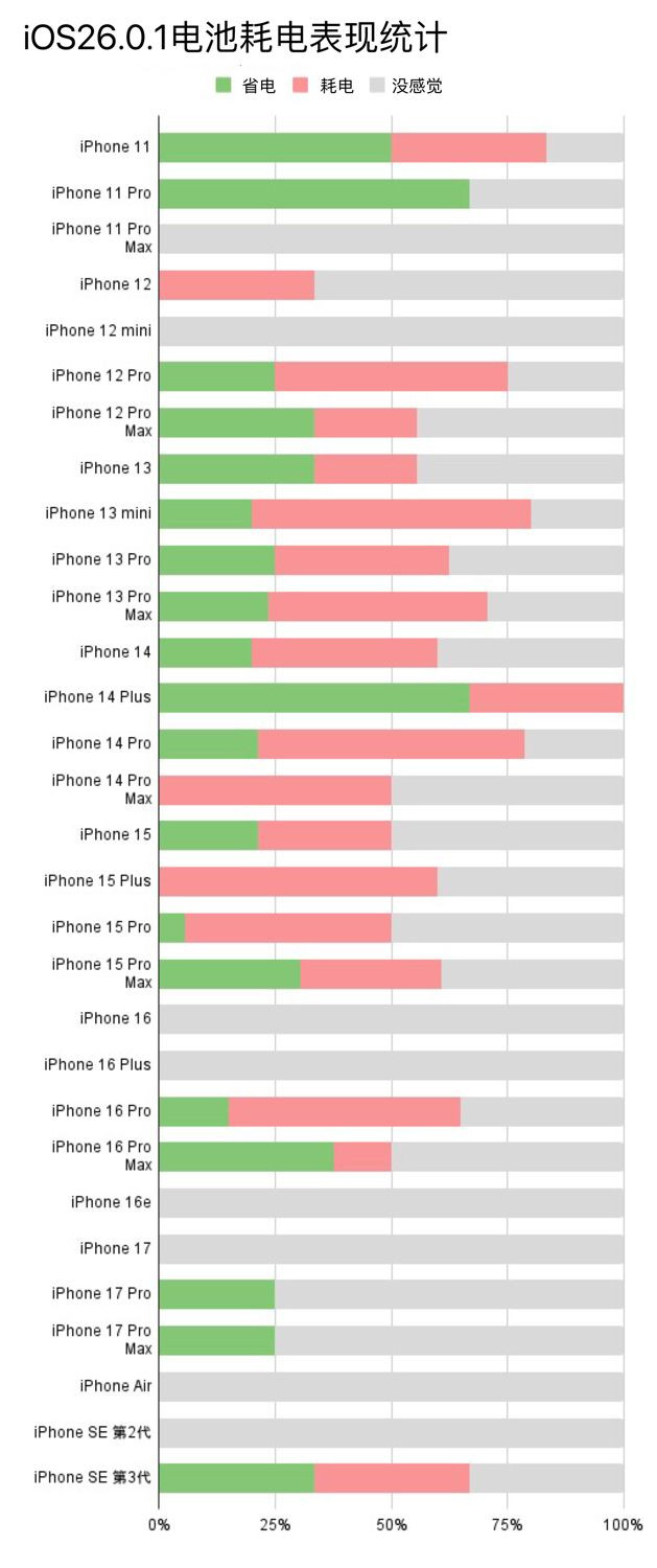 升级 iOS 26.0.1 耗电还是省电?电池续航表现统计